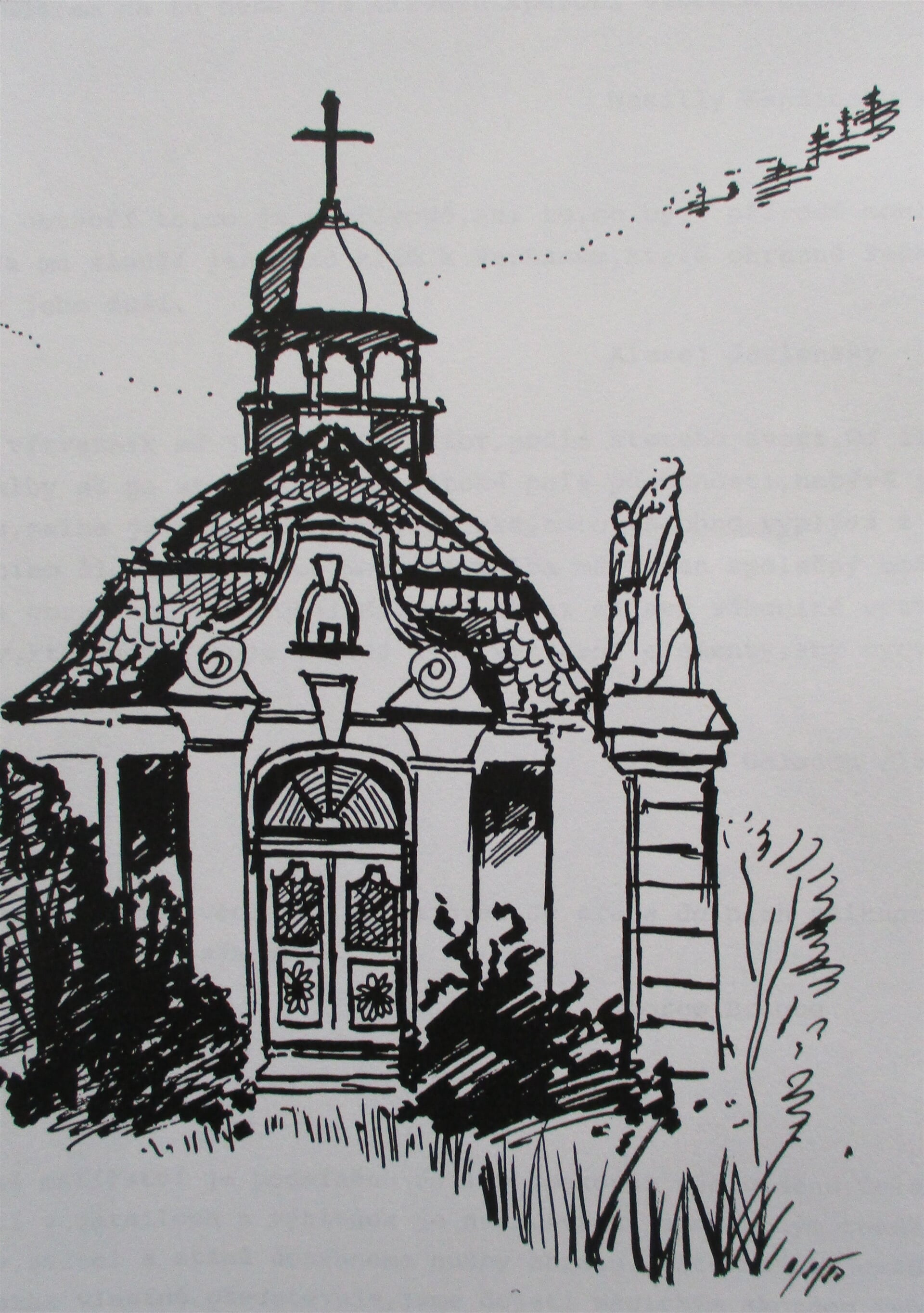 kresba "Hejnice, Kaple sv. Antonína", pero papír