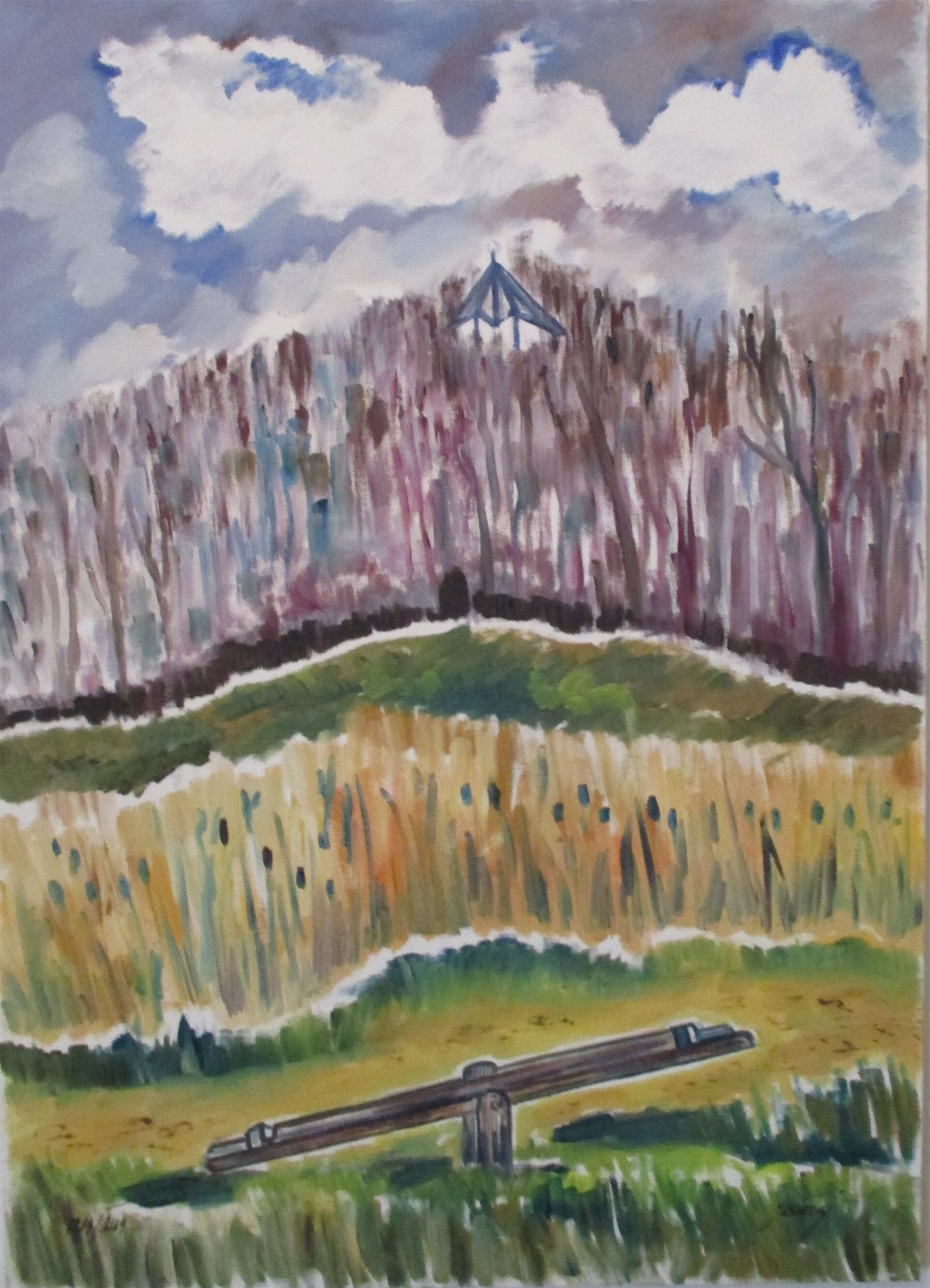 malba "Houpačka - pohled na Letohrádek Hvězda, Praha", olej plátno