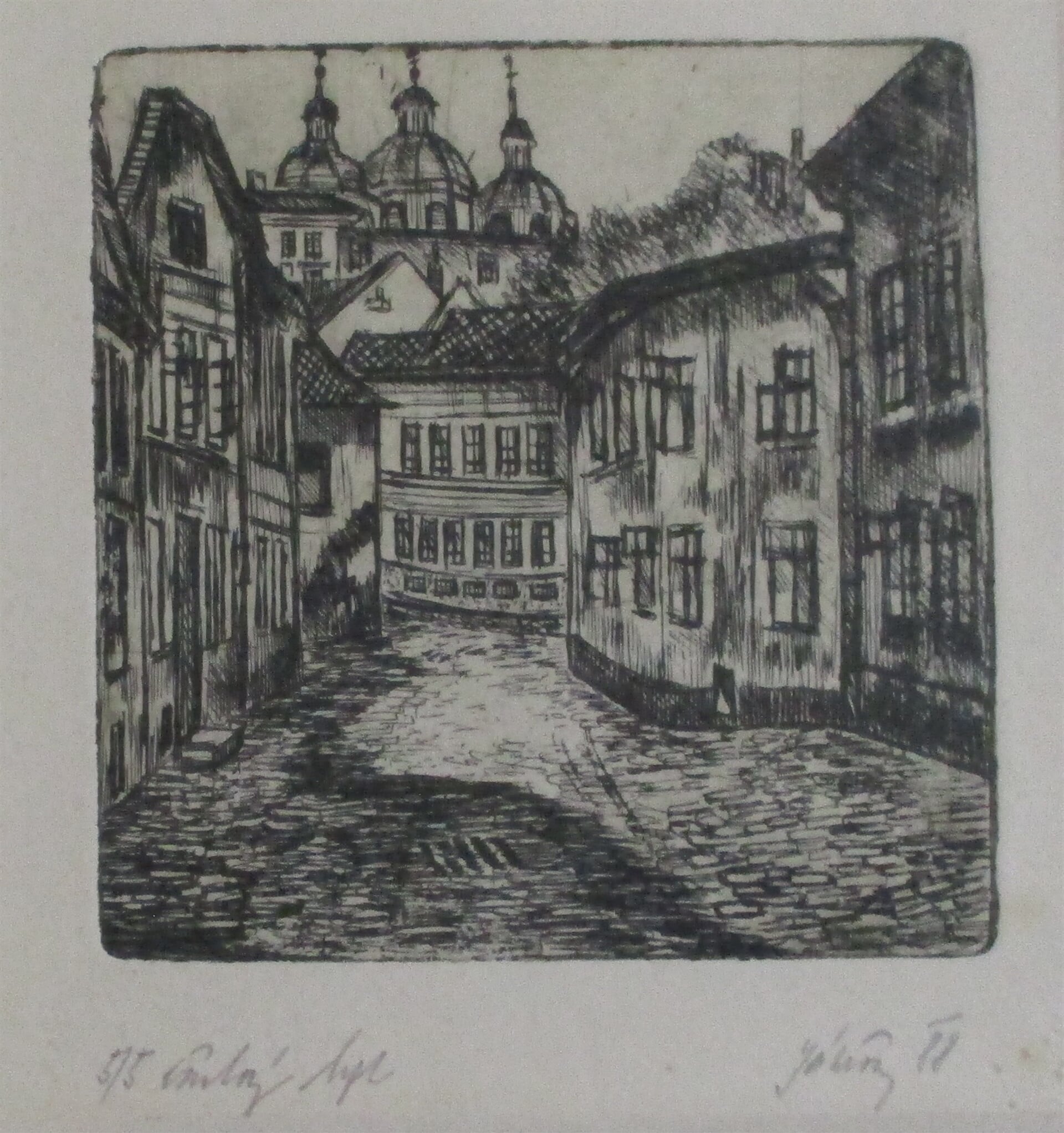 jiné "Hrnčířská ulice, Olomouc", čárkový lept