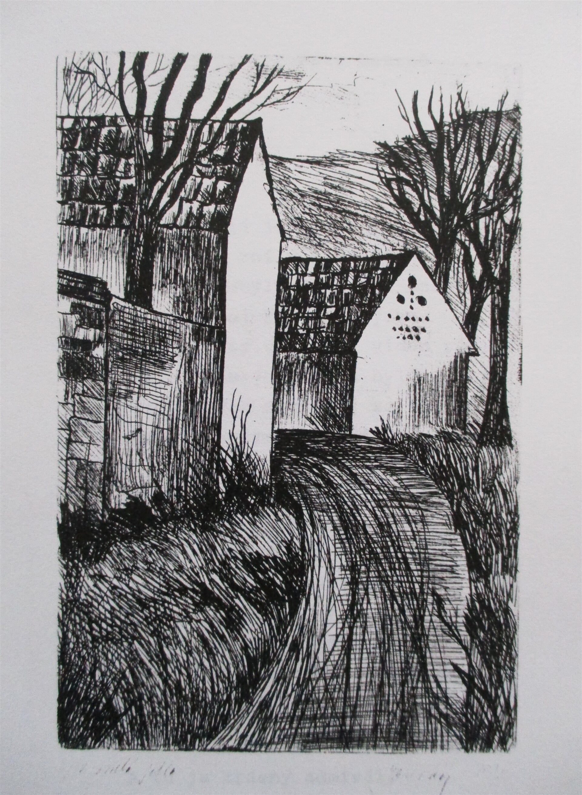 grafika "Jílové u Prahy, suchá jehla", suchá jehla ziková destička