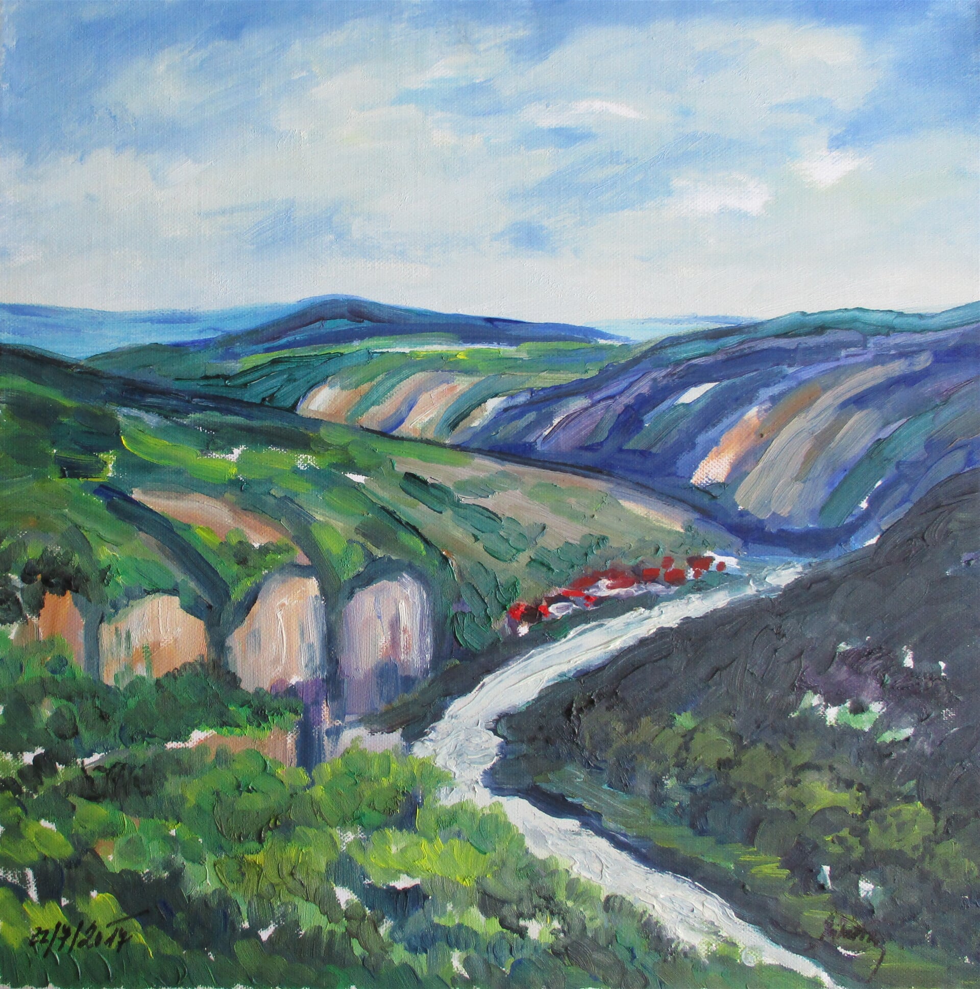 malba "Kaňon Berounky nad Srbskem", olej plátno