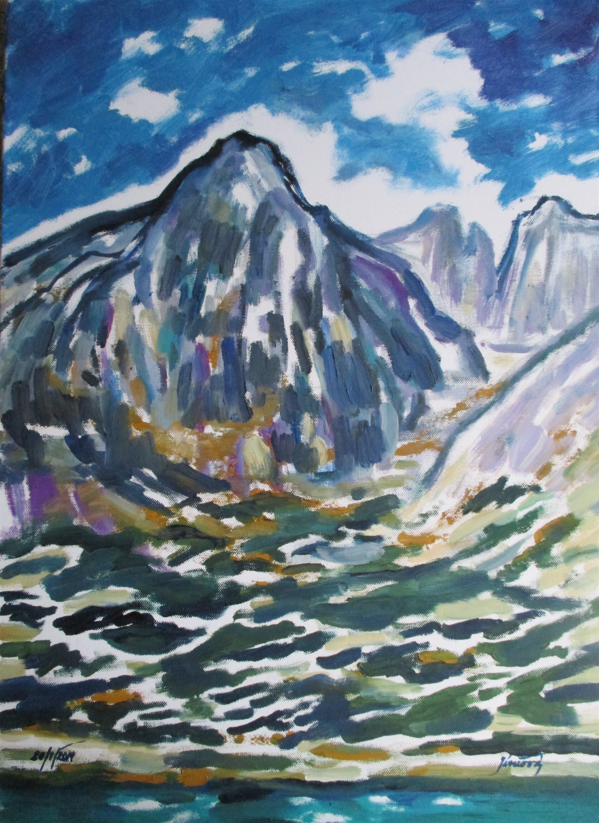 malba "Lomnický štít nad skalnatým plesem", olej plátno