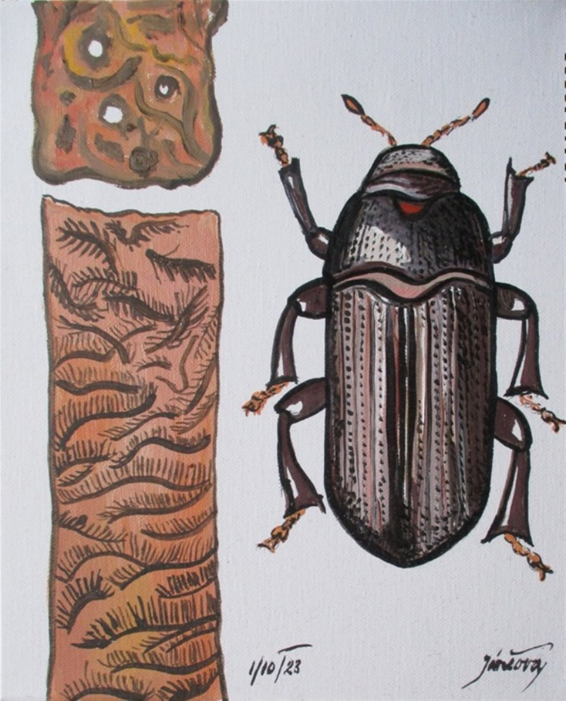 malba "Lýkohub smrkový, škůdce", olej plátno
