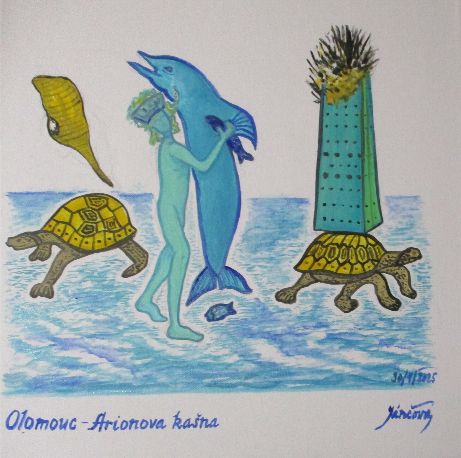 malba "Olomouc, Arionova kašna", olej plátno