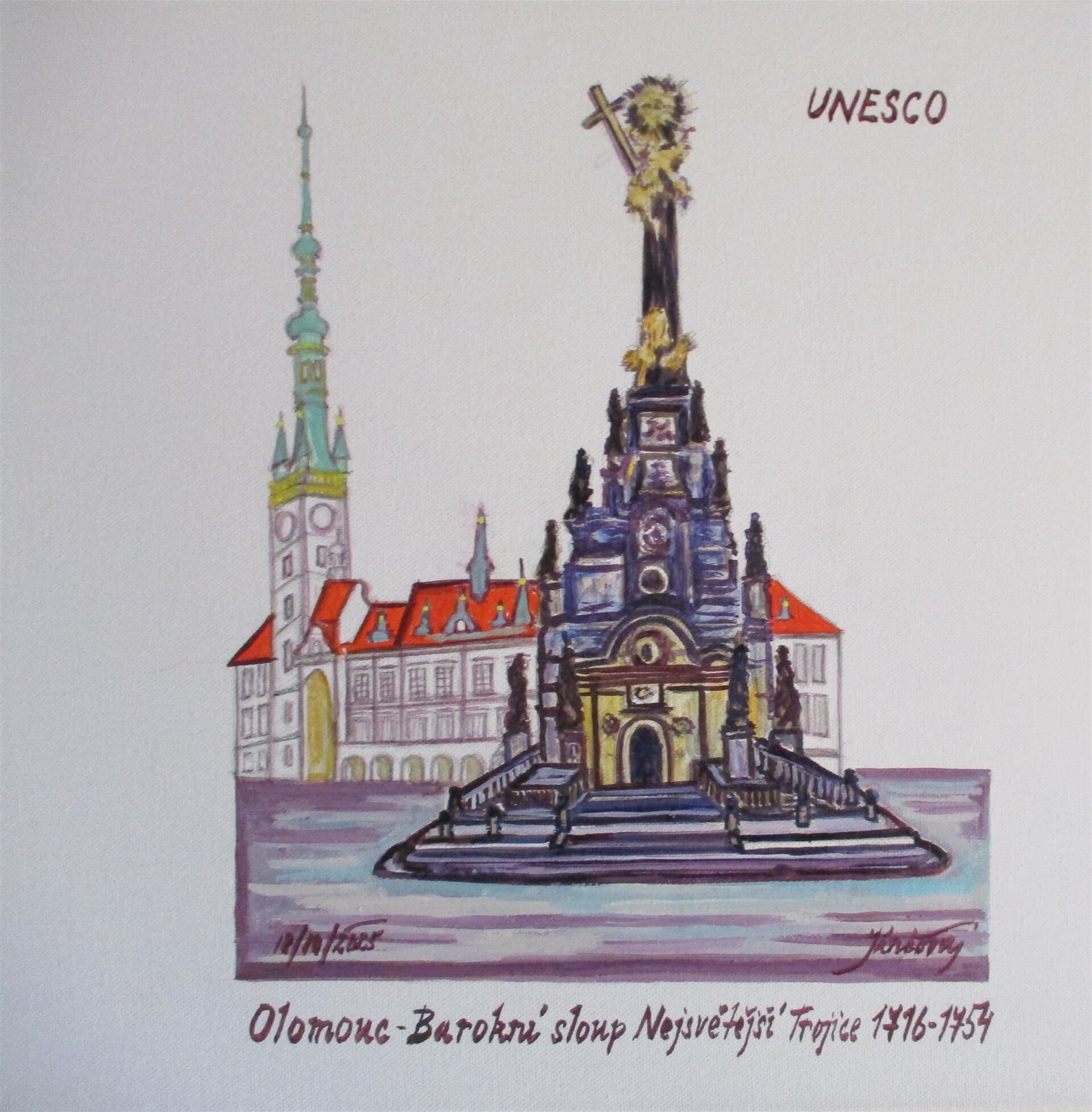 malba "Olomouc, Barokní sloup Nejsvětější Trojice, 1716-1754, UNESCO", olej plátno