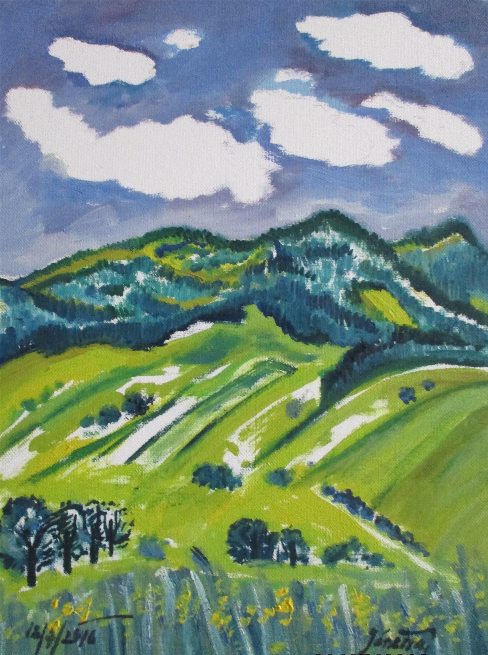 malba "Pohled z Hejnic, Jizerské hory", olej plátno