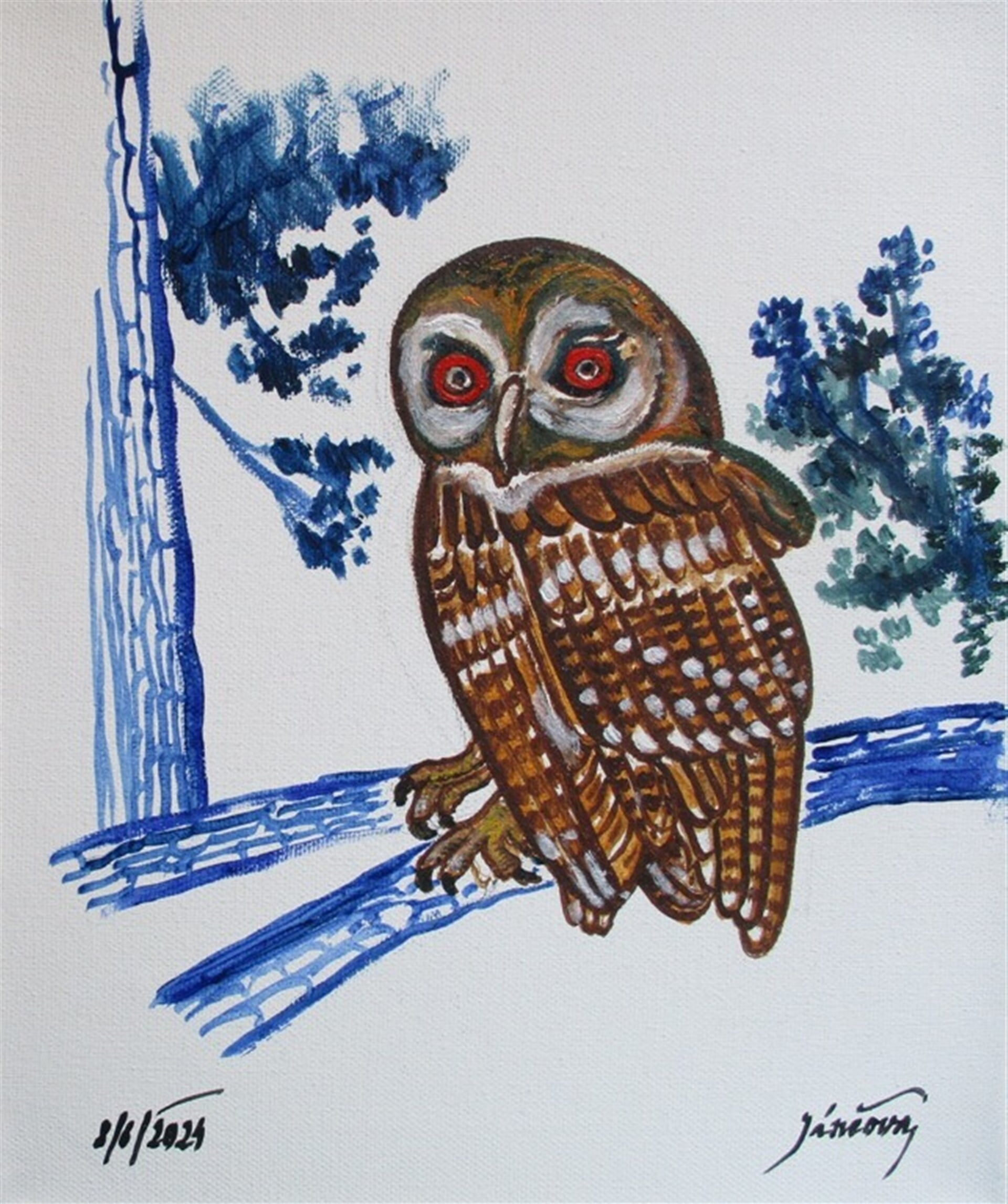malba "Puštík obecný", olej plátno