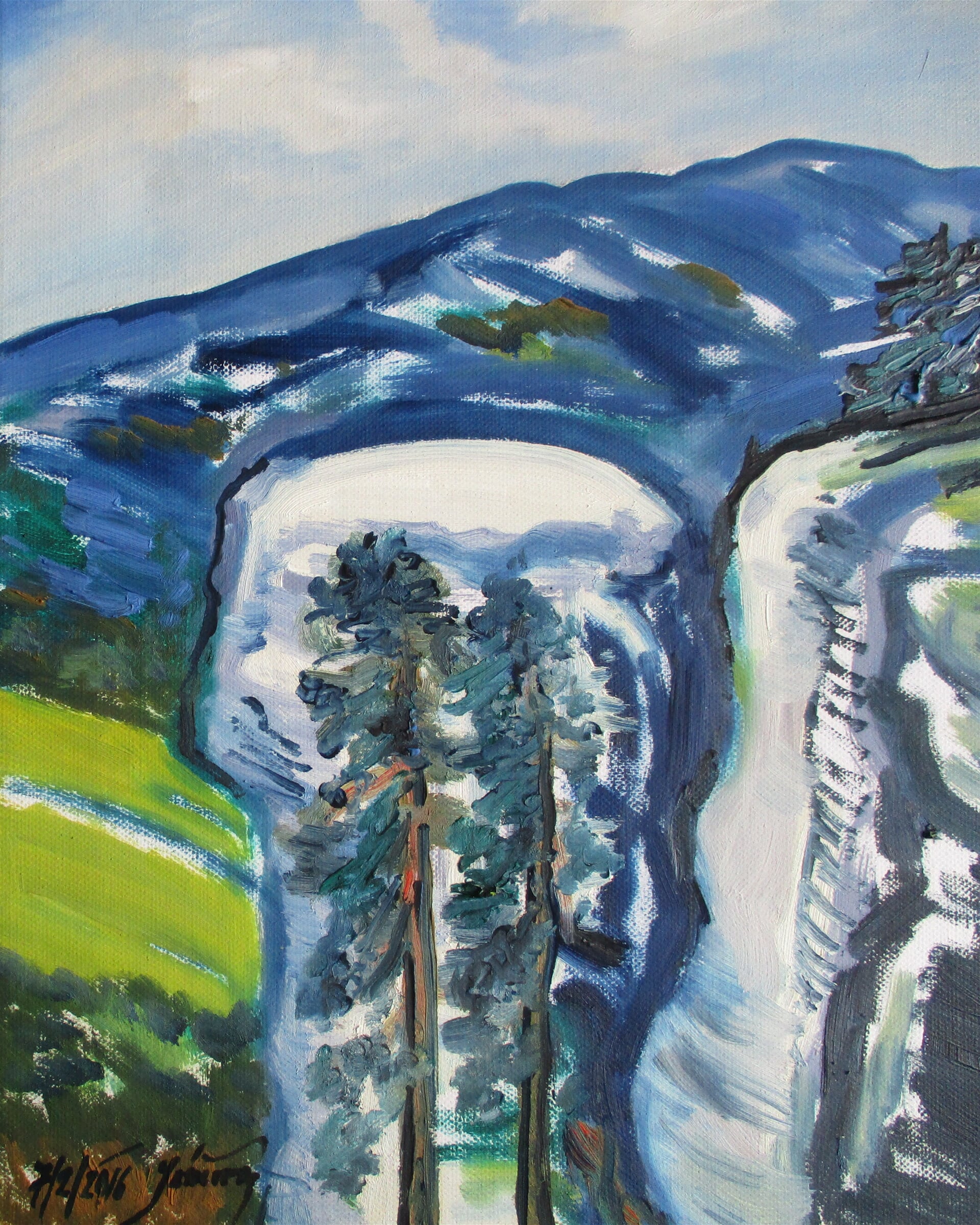 malba "Růženčina skála s výhledem na Kozákov", olej plátno