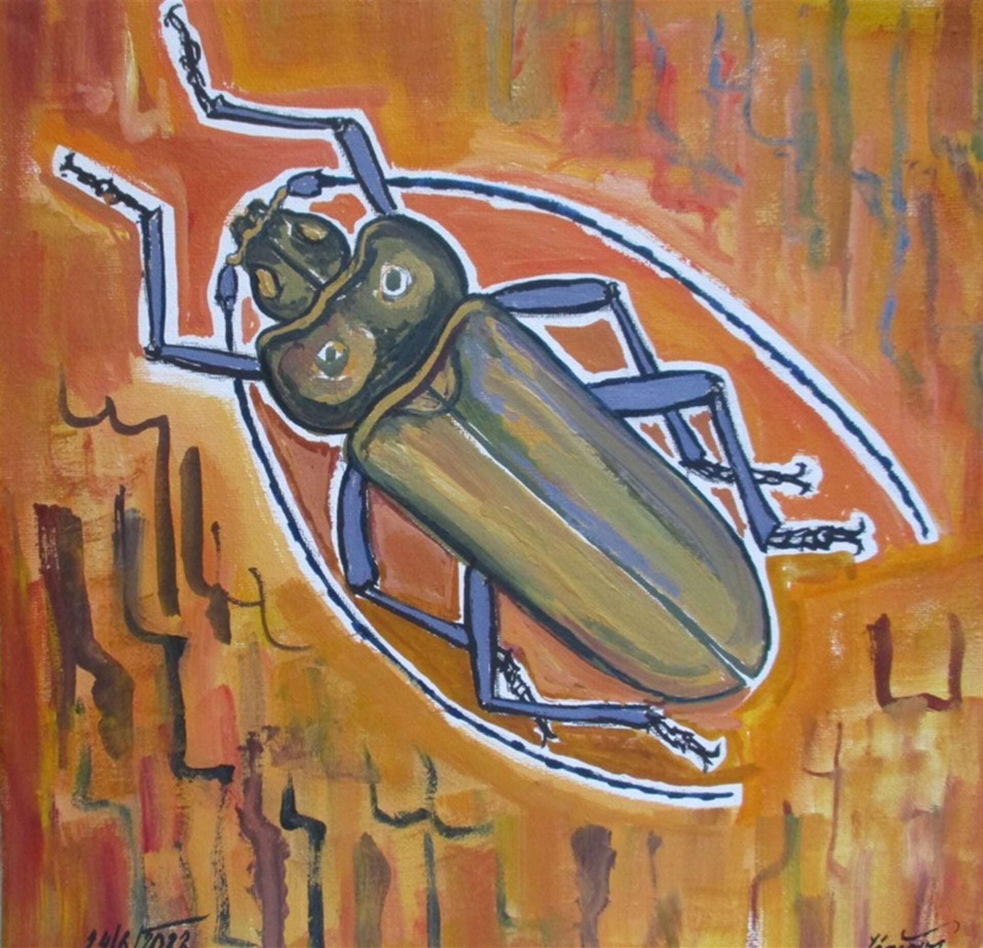 malba "Tesařík zavalitý, škůdce", olej plátno
